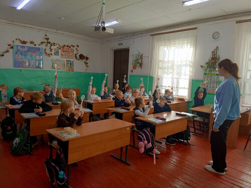 Татьяна, ученица 9 класса, ведёт урок математики.